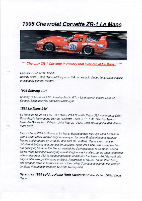 The only ZR1 Corvette GT1 class in history that ever ran at Le Mans !