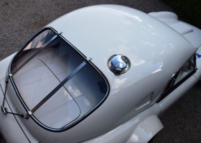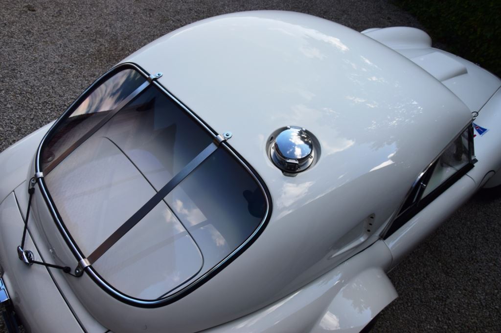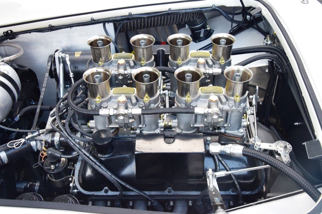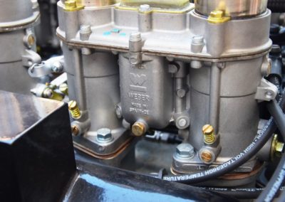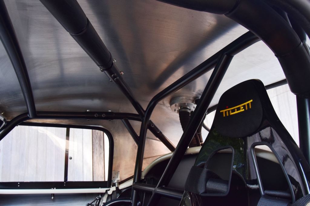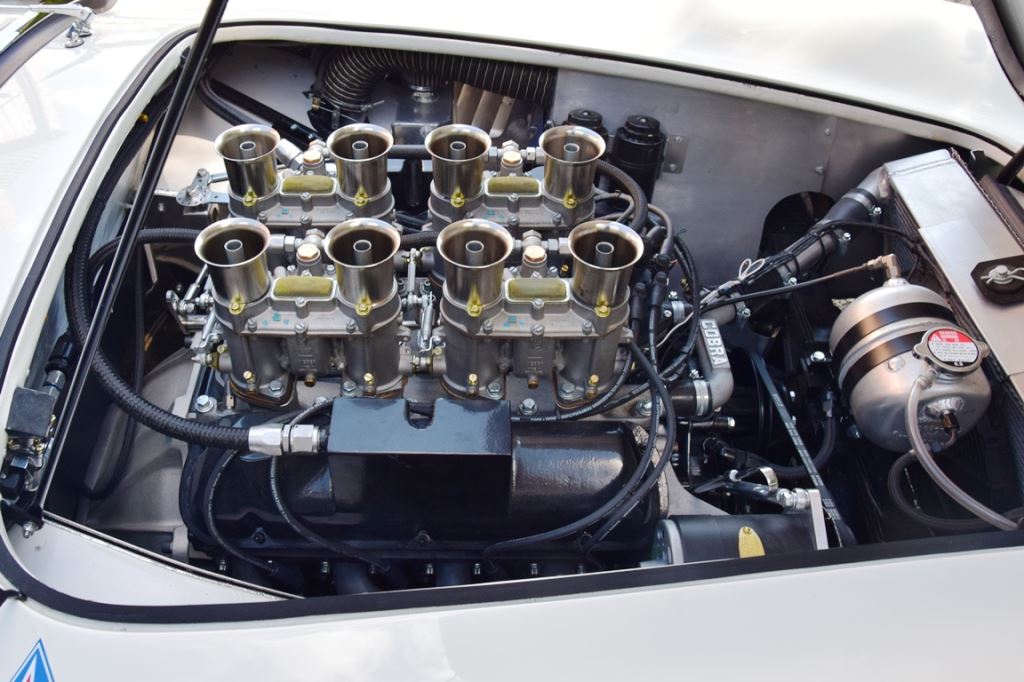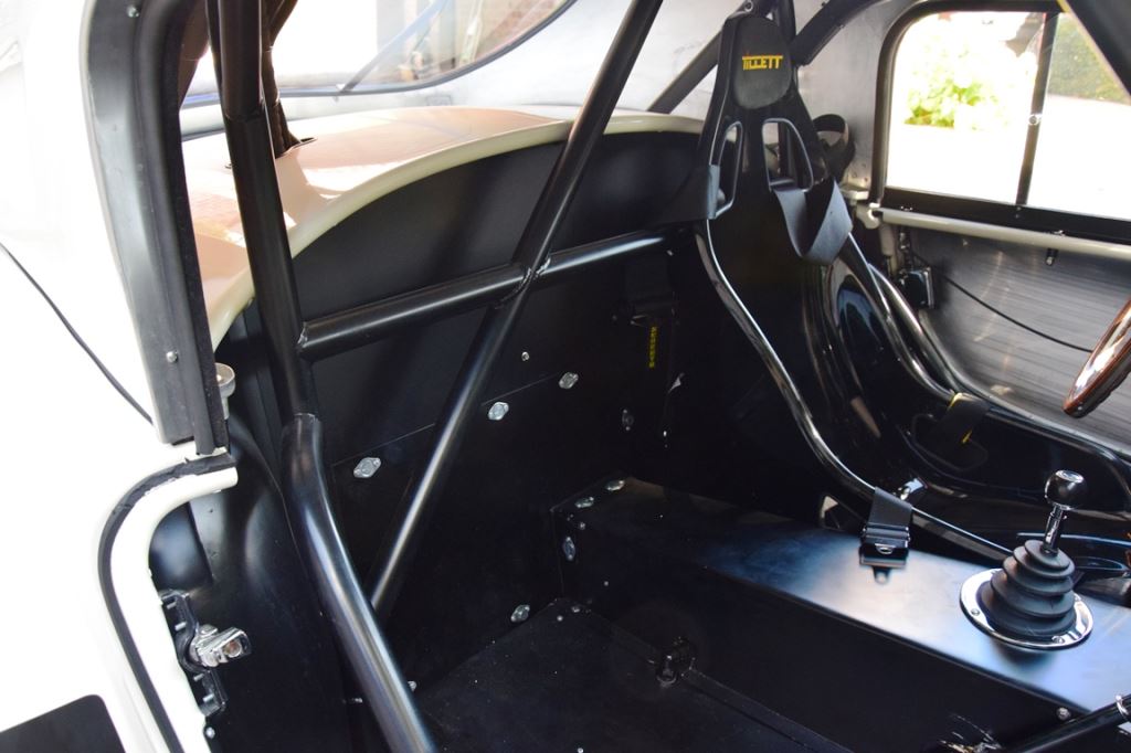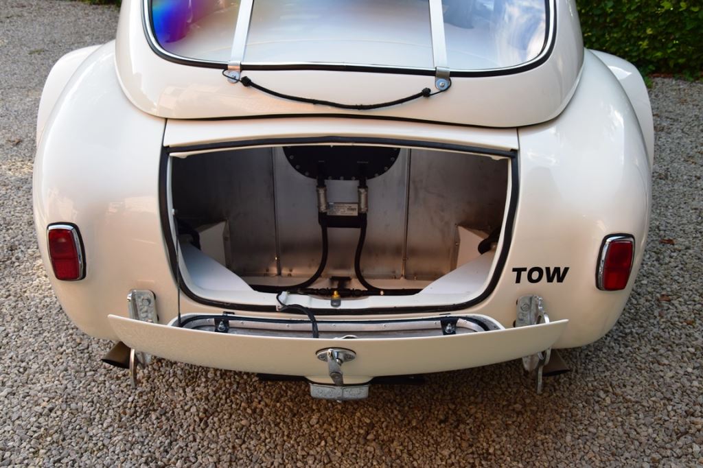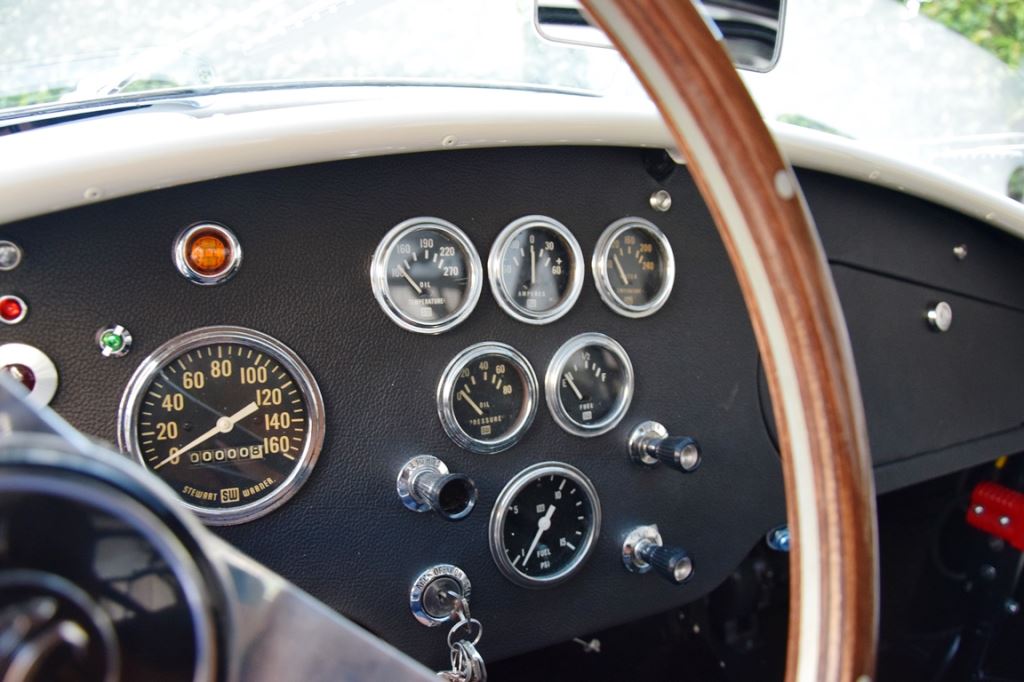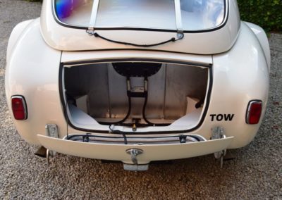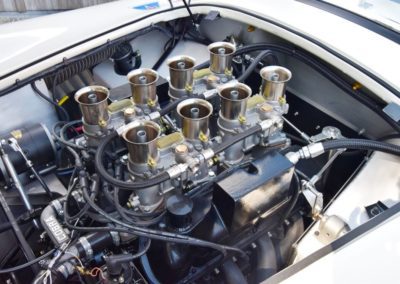 A fresh 289 Mathwall engine well revised by Burgol Racing Technologie Switzerland produce 460 bhp on the dyno. The exhaust is a full stainless steel system with 4 mufflers to suit modern noise requirements. The brand new T10 gearbox is made in accordance with FIA recognition form 1, and paired to a final drive with H/D output shafts. The rear diff is correct cast iron 4HU Salisbury differential mounted with homologated diff cooling and 3.77 ratio. The Cobra has a brand new 140 liters Premier Bladder fuel tank with 20L reserve tank and dual Holley fuel pumps for durability. The suspension has rosejointed A-arms and Koni 8211 shock absorbers which were especially developed for racing Cobra’s (and the very best you can use on these cars). The leafsprings are heavily upgraded for high speed racing. The brakes have Tilton main cylinders with Girling CR and ORA calipers fitted with Mintex brake pads. To get all this power on the road, this beautiful Cobra sits on Crosthwaite & Gardiner magnesium wheels fitted with L-section Dunlop Racing tyres. Everything is very lightweight, including the full aluminium body and Le Mans hardtop. The well appointed interior is period correct, with the fully original Cobra 289 dashboard layout and rare Stewart Warner gauges, correct Ford toggle switches and the typical wooden steering wheel. The driver is perfectly installed in a lightweight Tillet racing seat with full FIA approved 6-point harness and FIA specification FULL roll cage – all inspected and approved.